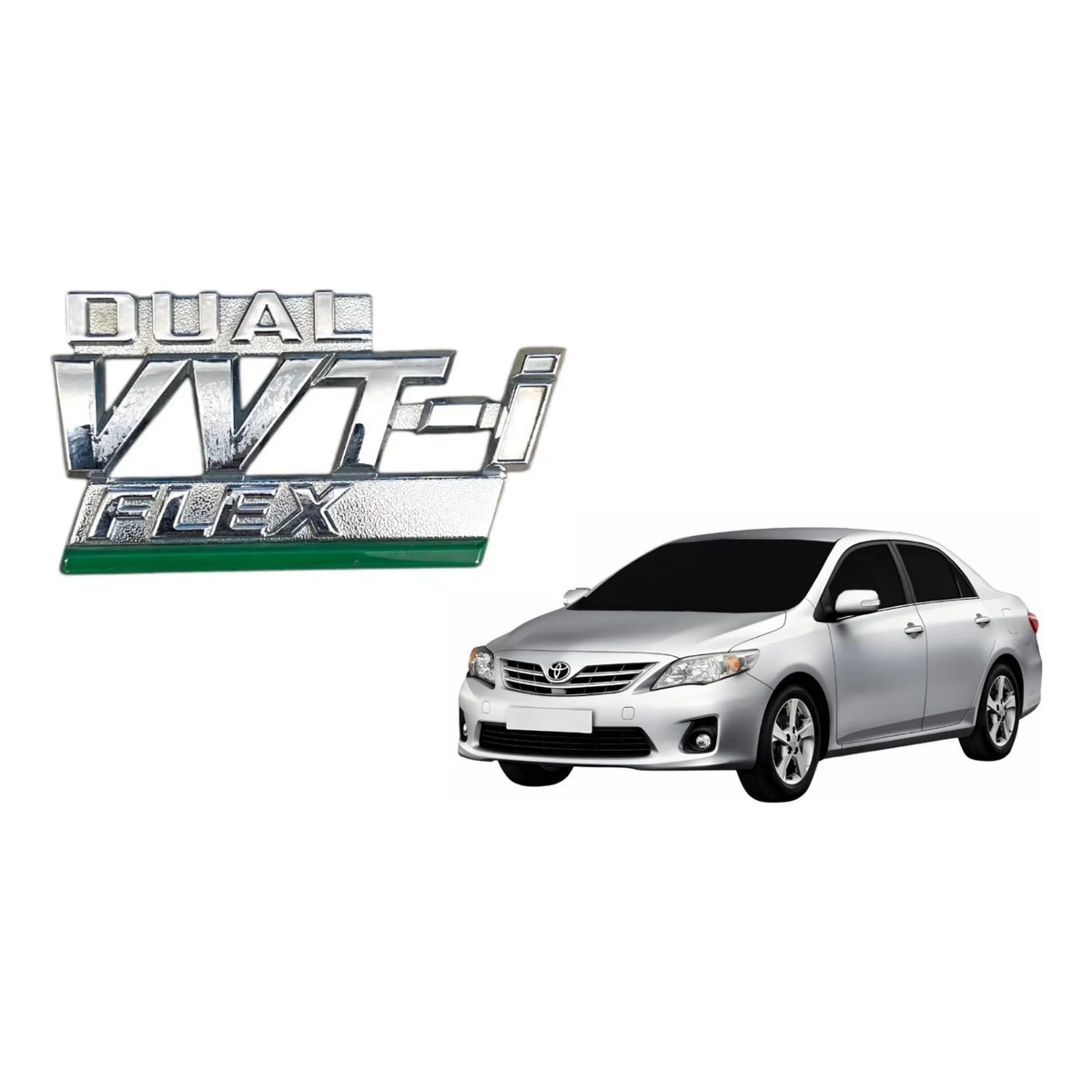Emblema Dual Vvt-i Flex C/ Linha Verde (paralama Corolla) Cromado Linha Verde